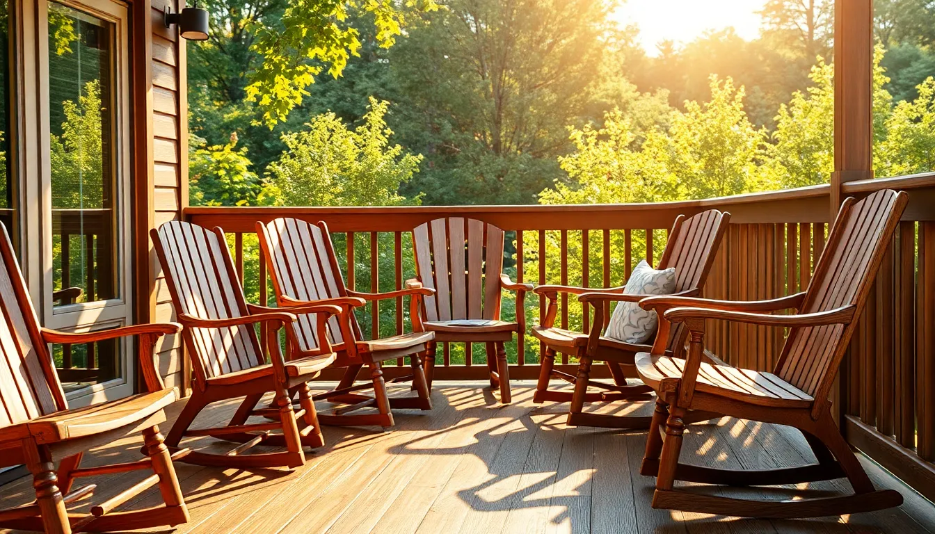 Traditional chairs bring a classic look to deck spaces. They often feature comfortable designs and solid construction, suitable for gatherings and leisurely afternoons. Many style options exist, including rocking chairs and Adirondack chairs. Materials like wood and metal add durability, ensuring longevity. Cushions enhance comfort, making these chairs inviting for extended use. Furthermore, matching colors and finishes can complement existing deck decor, creating a cohesive outdoor environment. Overall, traditional chairs combine functionality and style, making them popular choices for many homeowners.